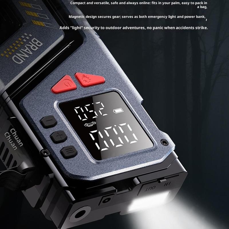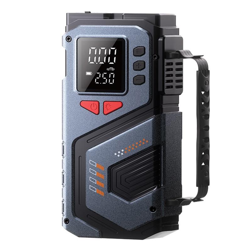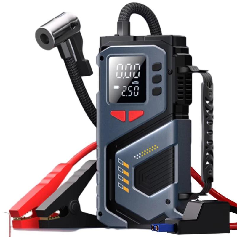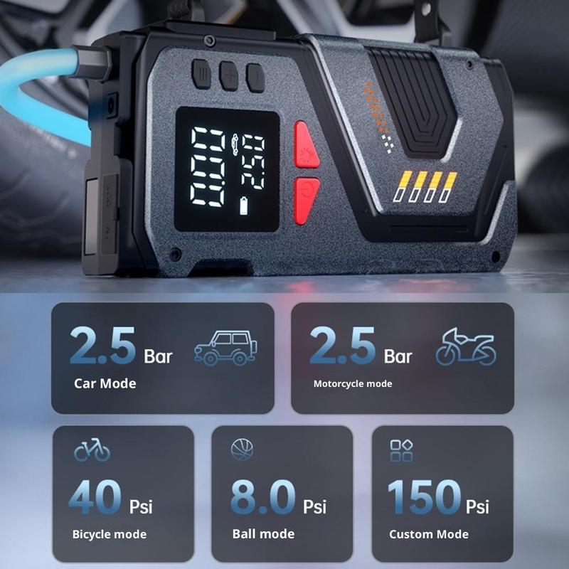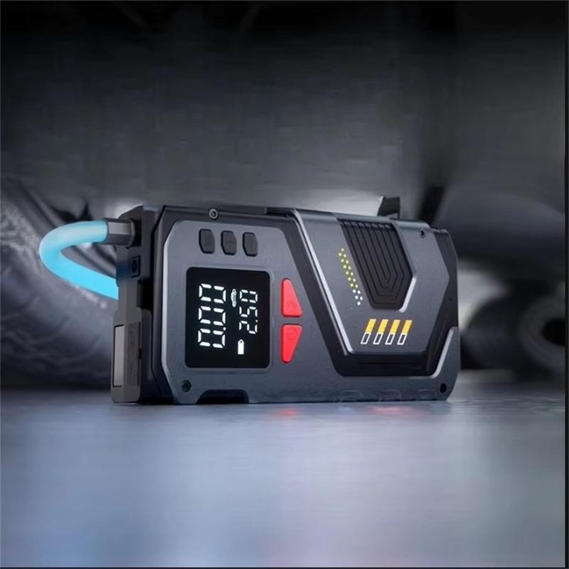L'appareil multifonction pour voiture H06 combine une pompe à air sans fil, un démarreur d'urgence et une lampe de poche LED, vous offrant ainsi une solution complète de dépannage en un seul appareil compact et portable. Parfait pour les voitures, les véhicules électriques, les vélos et les urgences en plein air.