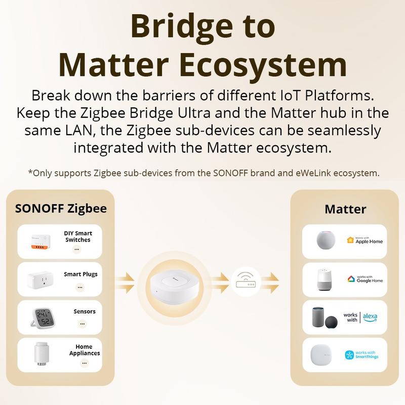 - Convertit les appareils Zigbee en appareils compatibles Matter pour une prise en charge plus large de l'écosystème