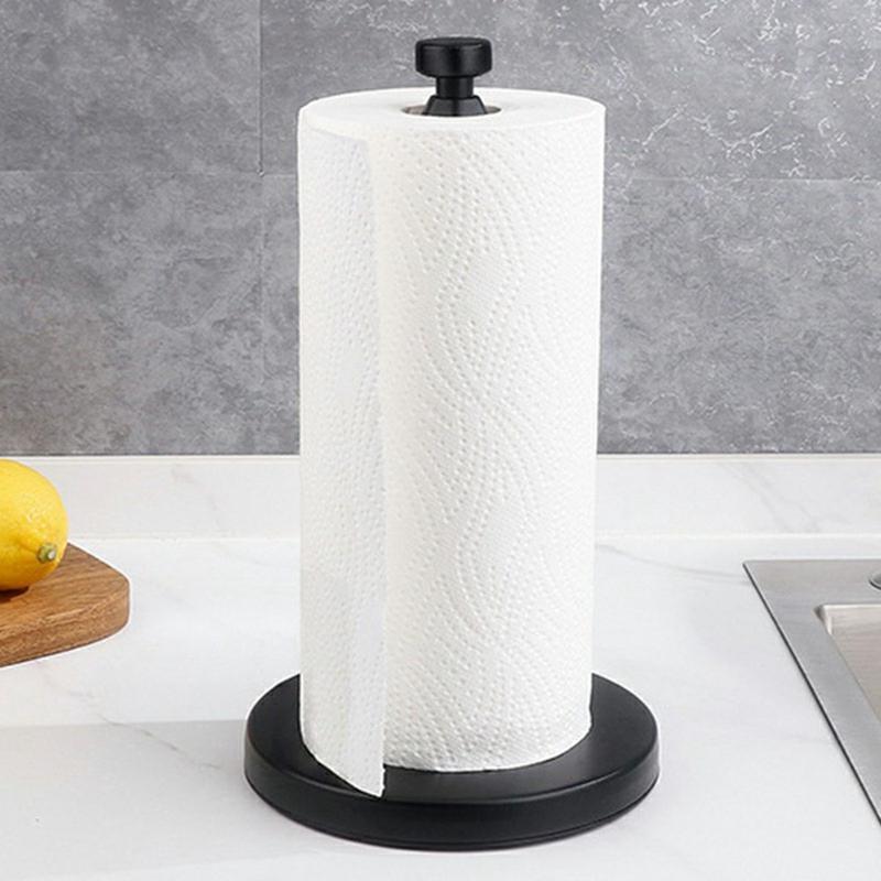 • Porte-essuie-tout en acier inoxydable avec amortisseur - Base lestée antidérapante, déchirement d'une seule main, support de comptoir