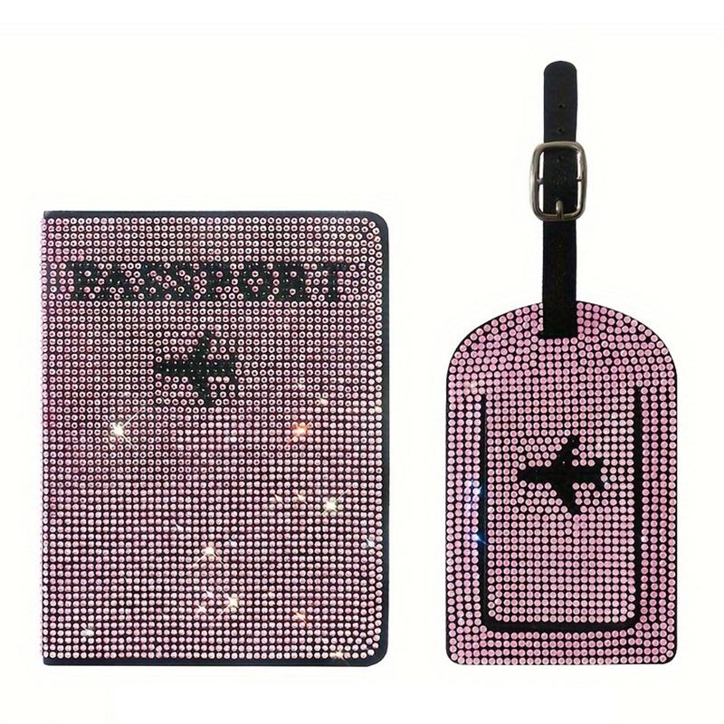 Ensemble porte-passeport et étiquette à bagages en strass - Organisateur de voyage en polyuréthane scintillant