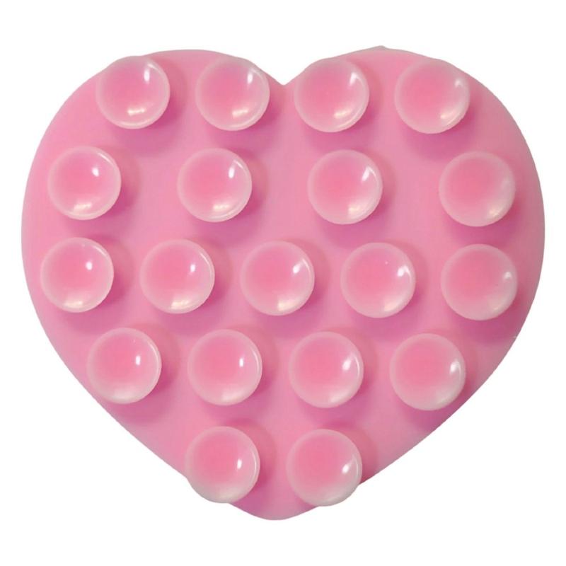 Porte-téléphone à ventouse en silicone en forme de coeur - rose