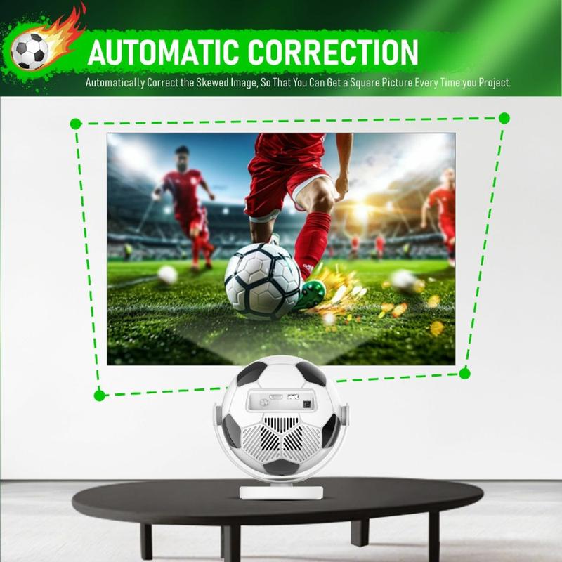 Profitez des plaisirs du grand écran dans les petits espaces grâce au projecteur portable HY300F en forme de ballon de football. Doté d'un design unique inspiré du football, ce projecteur intelligent et compact allie un style ludique à des fonctionnalités pratiques pour le divertissement à domicile. Que vous souhaitiez regarder des films en streaming, suivre des événements sportifs en direct, profiter de séries ou projeter du contenu sur le mur ou le plafond de votre chambre, ce modèle vous offre un moyen simple et flexible de créer une expérience visuelle plus immersive chez vous.