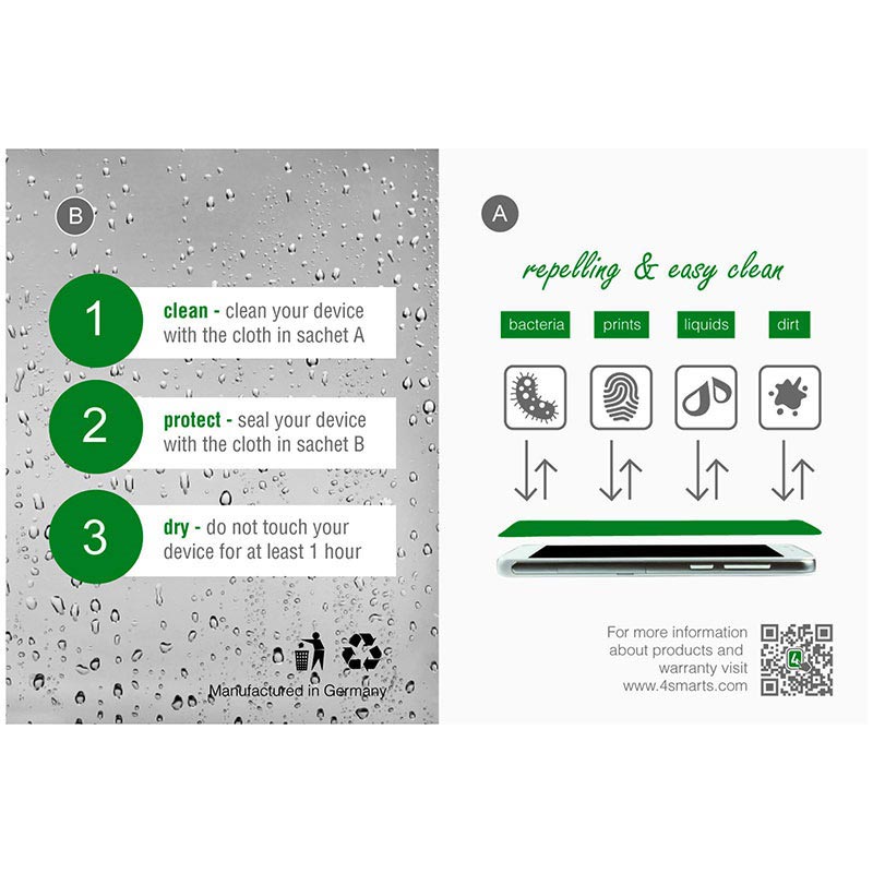 Grâce au protecteur d’écran liquide de 4smarts, vous pouvez facilement créer une couche protectrice invisible et sans bulles d’air sur l’écran de votre appareil. Les propriétés antibactériennes réduisent la présence de bactéries jusqu'à 99.9%.