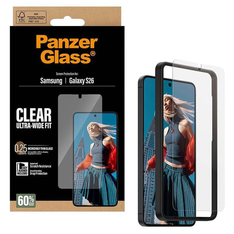 - Protecteur d'écran en verre trempé Ultra-Wide Fit pour Samsung Galaxy S26 par PanzerGlass