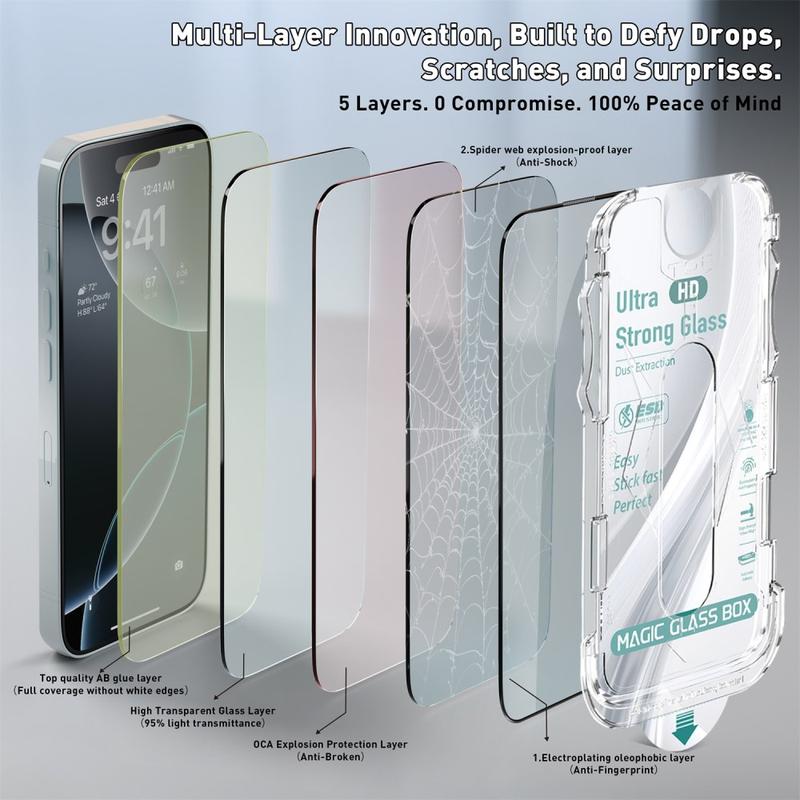 Que ce soit pour le travail, les jeux ou les voyages, cette protection garantit que votre iPhone 14 Plus, iPhone 13 Pro Max reste à l'abri des rayures, des empreintes digitales et des chutes accidentelles, tandis que l'outil d'installation permet de l'appliquer à la maison de manière rapide et professionnelle.