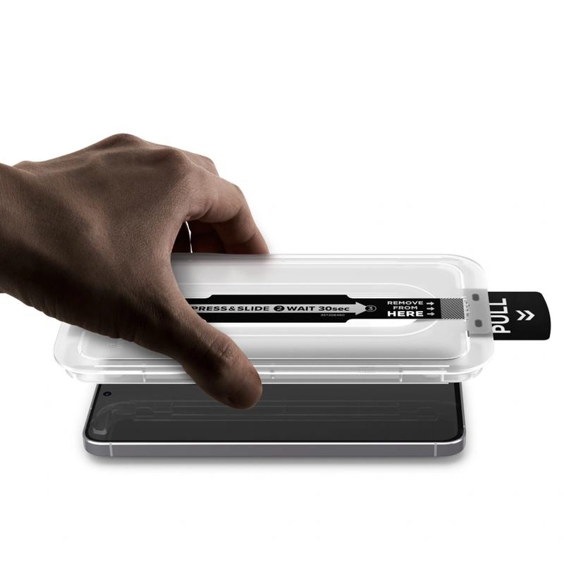 Le GLAS.tR EZ Fit Pro de Spigen allie durabilité et facilité d'installation. Le plateau d'alignement inclus simplifie le processus d'application, le rendant accessible même aux nouveaux utilisateurs. Sa conception adaptée aux étuis garantit la compatibilité avec une large gamme d'étuis de téléphone, offrant ainsi une protection complète sans compromis sur le style.