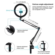 PULUZ 10.2" 26cm Ring Curved Light + Desktop Arm Stand USB 3 Modes Dimmable Dual Color Temperature LED Vlogging Selfie Photography Video Lights with Phone Clamp