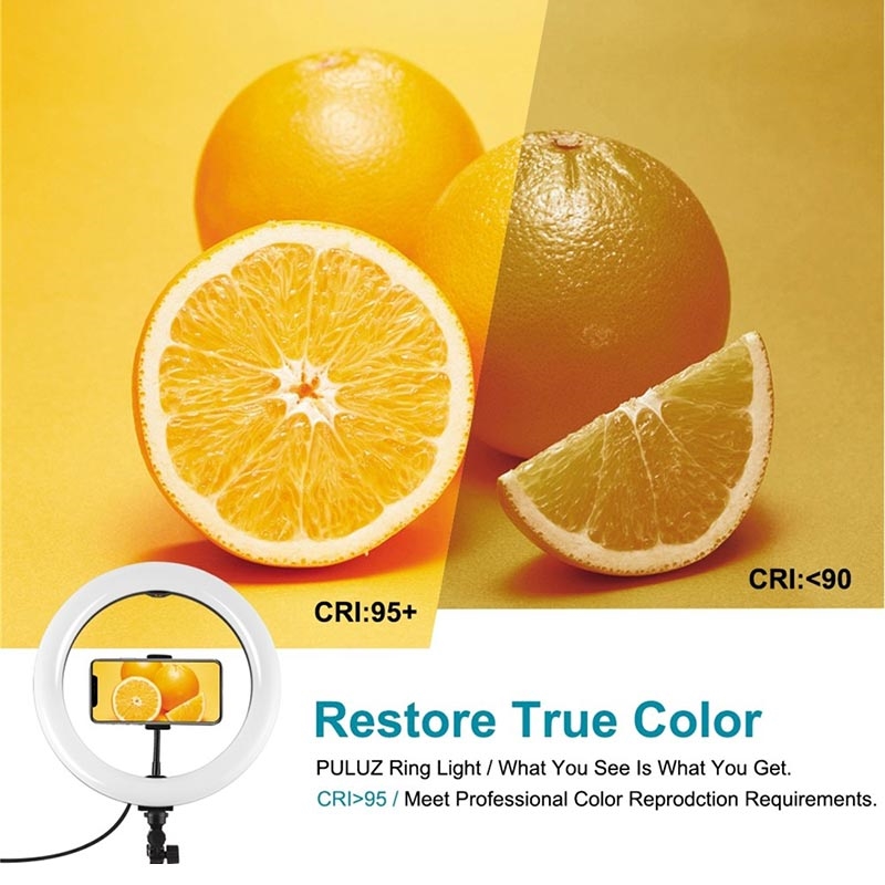 L'anneau lumineux est composé de 2x60pcs de perles LED à économie d'énergie, la dissipation de la chaleur est excellente, l'alimentation en courant constant et le rendu des couleurs élevé, adoucissent la source de lumière et améliorent le teint de la peau dans la photographie de portraits.