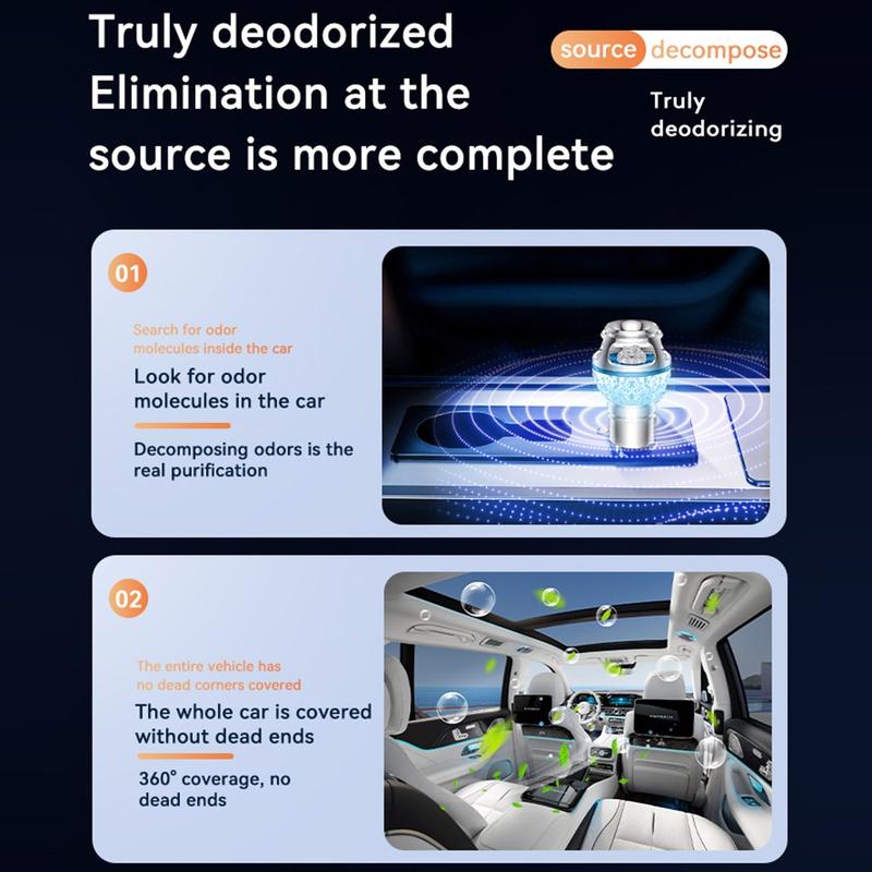 Contrairement aux désodorisants de voiture classiques qui se contentent de masquer les odeurs indésirables, ce purificateur est conçu pour s'attaquer directement aux molécules odorantes. Sa couverture de purification de 720° assure un traitement de l'air plus homogène dans tout l'habitacle, contribuant ainsi à rafraîchir l'air autour du conducteur, des passagers, des sièges et du plancher. La combinaison d'ions négatifs à haute concentration et d'ozone à faible concentration agit de concert pour créer un environnement plus agréable à bord, que ce soit lors des trajets quotidiens, des longs trajets ou des moments passés dans les embouteillages.