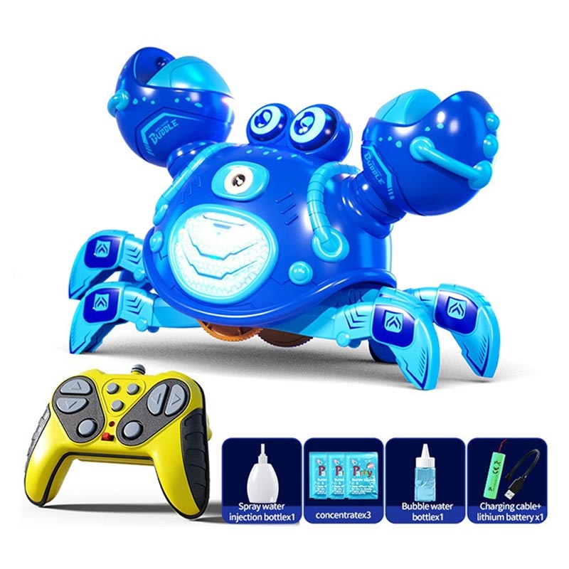 Grâce à la télécommande 2,4 GHz et à une portée allant jusqu'à 40 m, le crabe peut se déplacer, tourner, pulvériser de la brume et créer des bulles pour une expérience de jeu encore plus divertissante. Son corps en ABS résistant et ses bords arrondis le rendent pratique pour un usage quotidien, tandis que le mode démo automatique ajoute encore plus de plaisir.