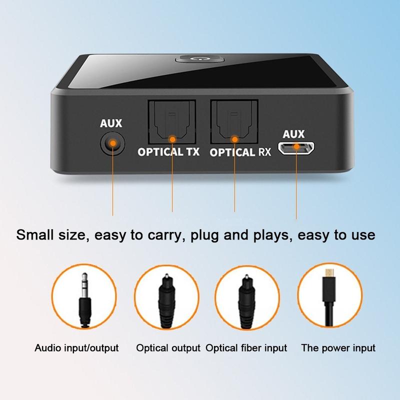 L'émetteur et récepteur audio Bluetooth 5.0 à fibre optique est un adaptateur 2-en-1 compact et puissant qui permet une connexion transparente entre l'équipement audio filaire et les appareils compatibles Bluetooth. Que vous souhaitiez transmettre le son d'un téléviseur à un casque sans fil ou diffuser de la musique d'un smartphone à des haut-parleurs filaires, cet adaptateur offre un son stable et de haute qualité.