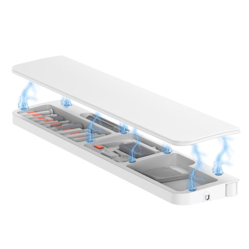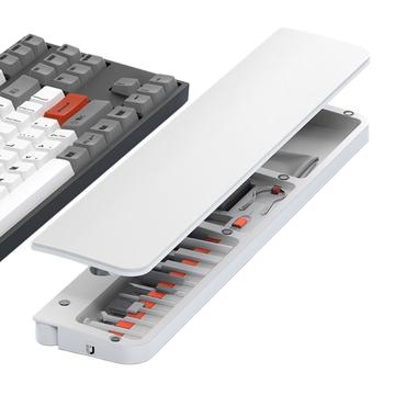 À l'intérieur du repose-poignet se trouve un kit de nettoyage complet de 22 outils conçu pour nettoyer en profondeur les claviers, les écouteurs, les ports de chargement de téléphone, les objectifs d'appareil photo, les interrupteurs et autres appareils électroniques. Chaque outil a sa propre place, ce qui garantit une organisation facile et un accès rapide.