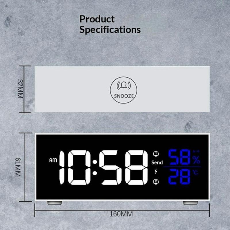 Le réveil musical multifonction GS-8812 combine un élégant écran LED de type miroir avec des fonctionnalités pratiques au quotidien telles que deux alarmes, une luminosité et un volume réglables, ainsi que la surveillance en temps réel de la température et de l'humidité intérieures. Conçu pour les chambres à coucher, les bureaux et les chambres d'étudiants, il offre 16 sonneries musicales pour un réveil plus agréable, une commande vocale pour une utilisation facile et une puce intelligente silencieuse qui élimine les bruits de tic-tac gênants. Avec une batterie rechargeable intégrée de 2200 mAh et une fonction de mémoire, il est fiable aussi bien lorsqu'il est branché que lorsque vous êtes en déplacement.