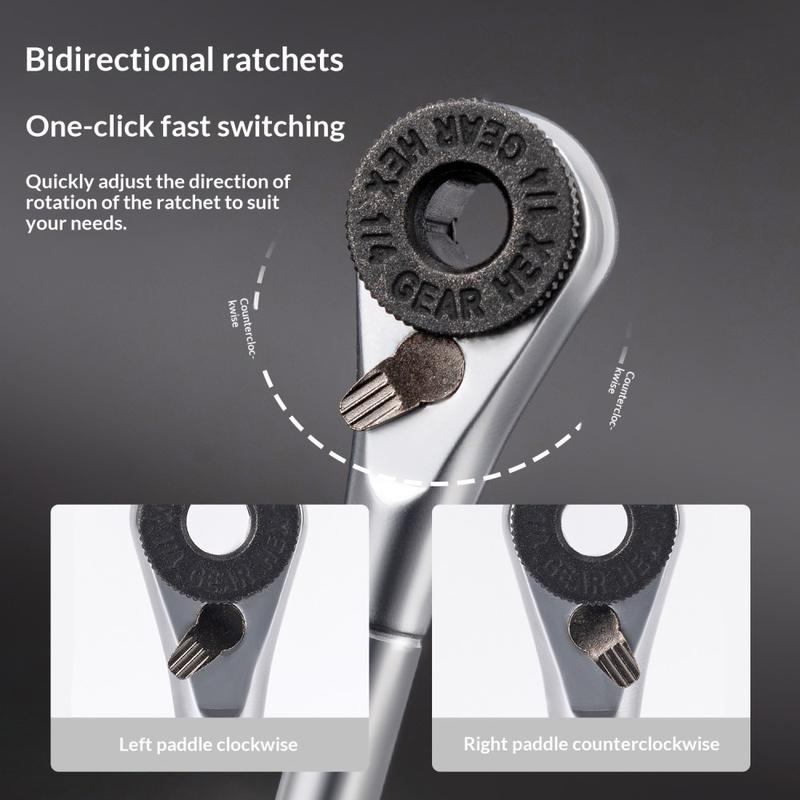 Le Rockbros TG-8601 est doté d'un mécanisme à cliquet bidirectionnel innovant qui vous permet de serrer ou de desserrer les fixations en douceur sans avoir à repositionner l'outil, ce qui vous fait gagner du temps et vous épargne des efforts lors de l'entretien de votre vélo.