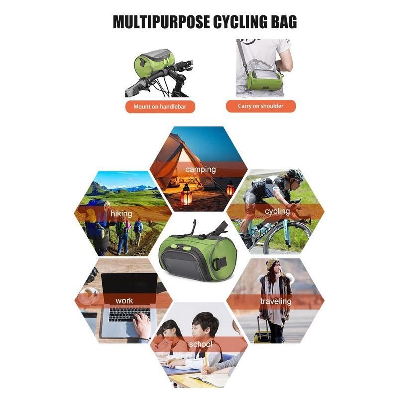 Le sac de rangement avant pour vélo peut également être utilisé comme sac à bandoulière quotidien, polyvalent et à la mode, parfait pour l'école, le travail, la randonnée, l'escalade, le cyclisme, le camping, les voyages, etc.