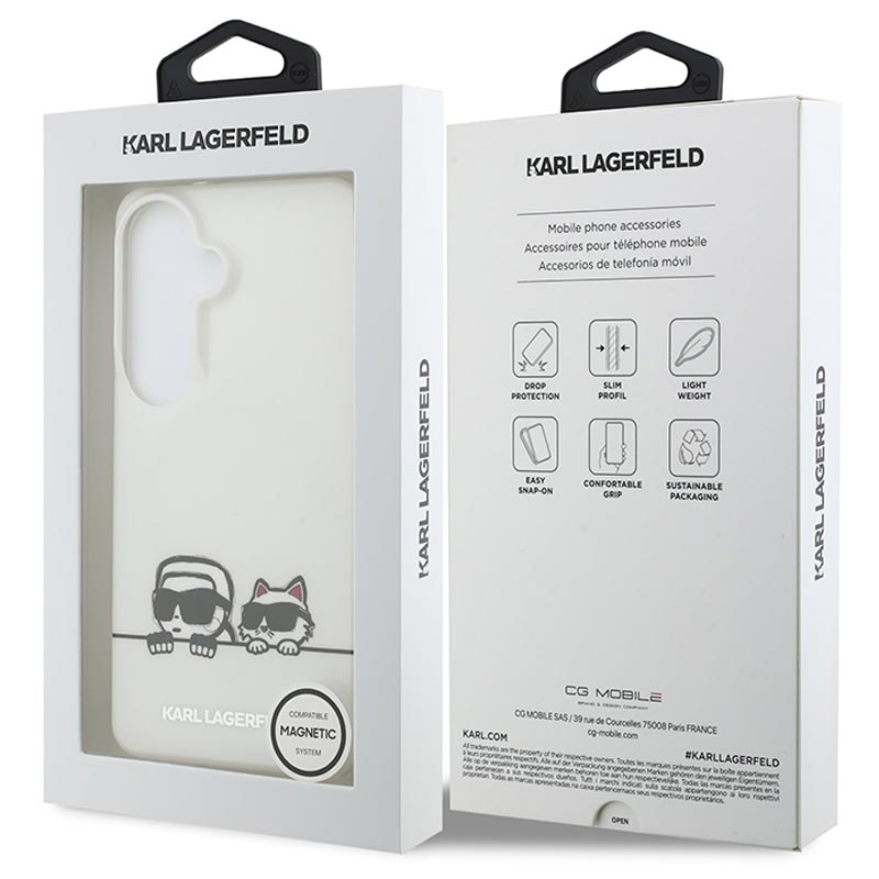 Samsung Galaxy S26+ Karl Lagerfeld IML Karl&Choupette ; étui magnétique avec logo Peekaboo - Blanc