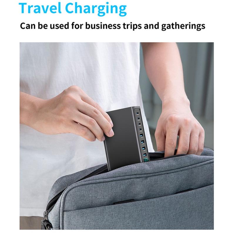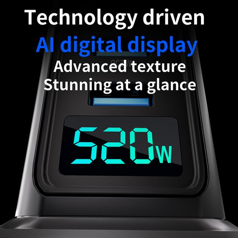 Chargez toute votre configuration à partir d'un hub puissant. Cette station de charge de bureau GaN 5.0 de 520W est conçue pour une utilisation intensive de plusieurs appareils, offrant 8 ports (4x USB-C + 4x USB-A) et un affichage numérique de la puissance en temps réel pour que vous puissiez surveiller la sortie d'un seul coup d'œil. Elle est idéale pour alimenter les ordinateurs portables, les tablettes, les téléphones, les casques, les manettes de jeu, les appareils photo et les banques d'alimentation - en même temps - tout en gardant votre espace de travail bien rangé et en maîtrisant le chaos des câbles. Grâce à la surveillance de la température par IA et aux protections de sécurité multicouches, vous bénéficiez d'une charge rapide et stable sans compromettre votre tranquillité d'esprit.