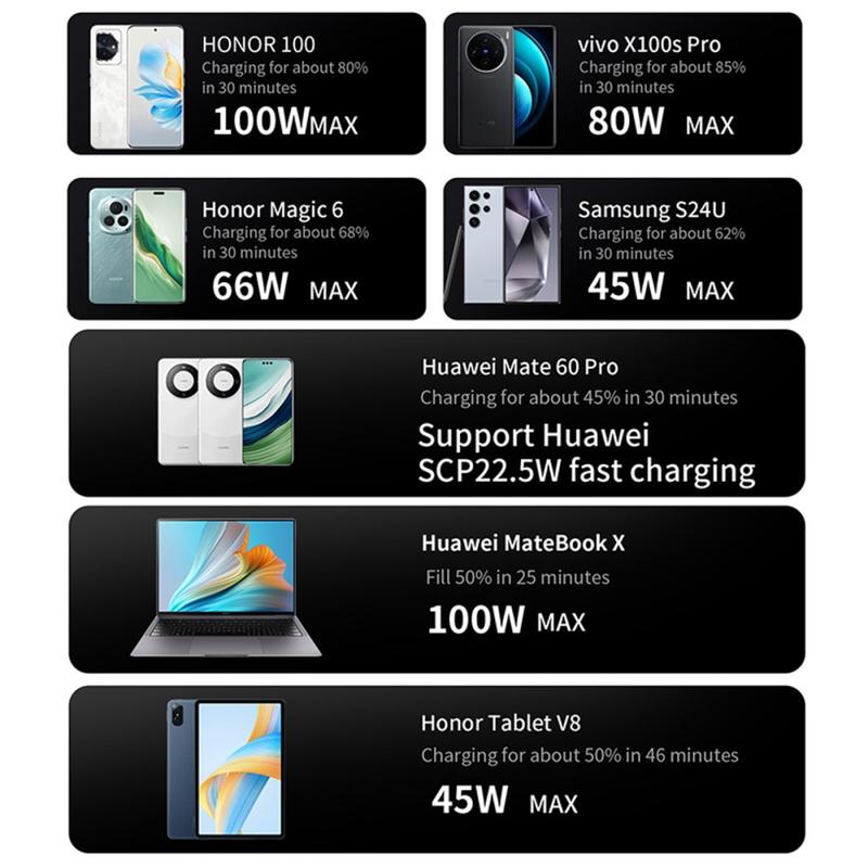 - Prise en charge de la charge rapide : PD3.1, QC3.0 et autres normes courantes