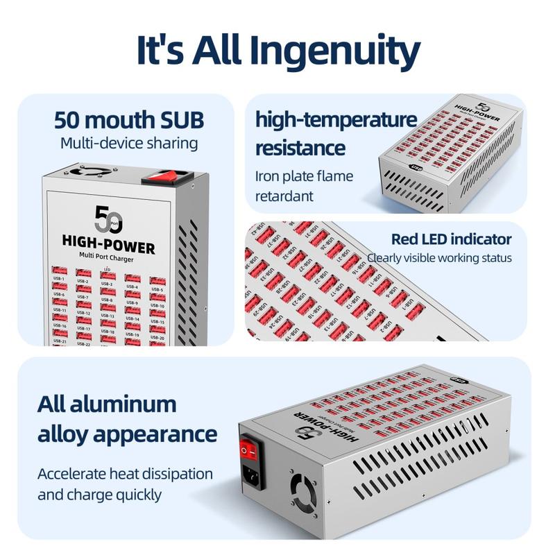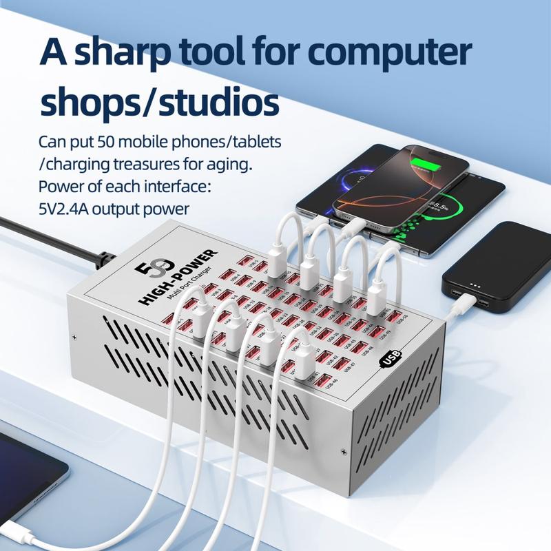 - 50 ports USB pour la recharge simultanée de plusieurs appareils dans des environnements commerciaux et industriels