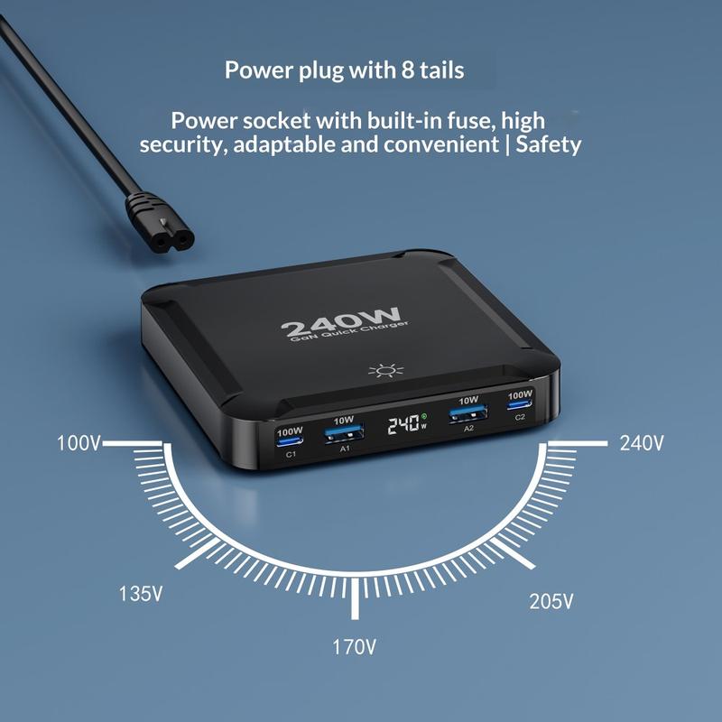 Elle est particulièrement utile pour les utilisateurs possédant plusieurs appareils qui doivent être rechargés régulièrement au travail, en déplacement ou à la maison. L'indicateur d'alimentation LED offre un contrôle supplémentaire, tandis que les protections de sécurité et la large plage de tension d'entrée en font un choix fiable pour les modes de vie modernes impliquant l'utilisation de plusieurs appareils.