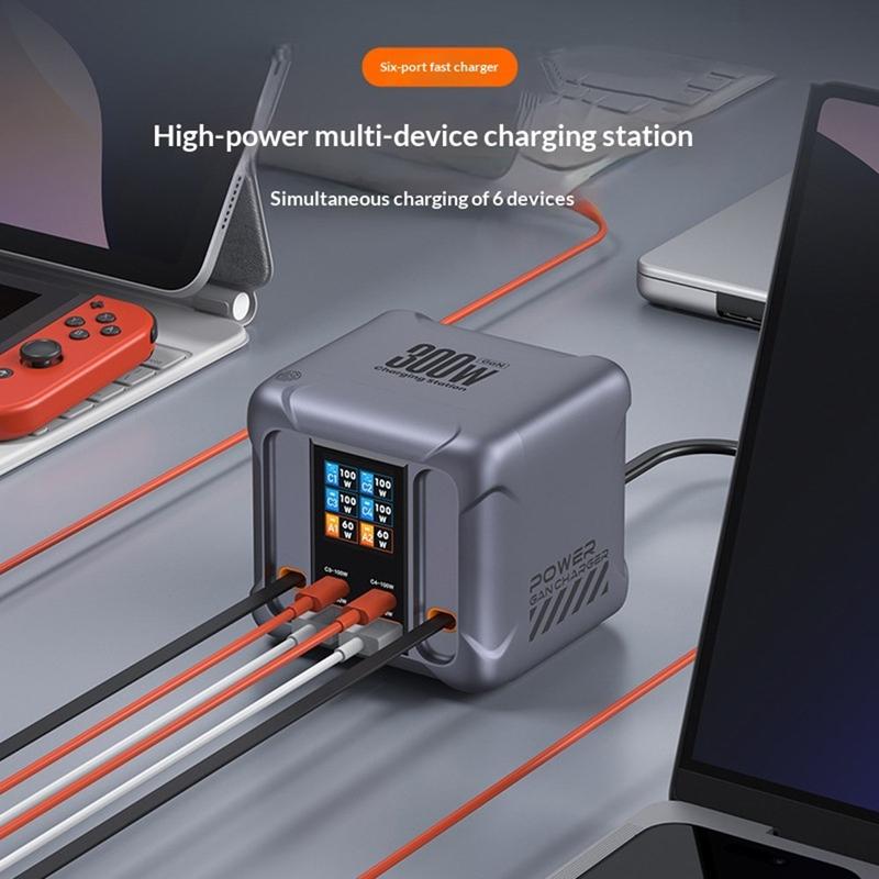 La station de recharge de bureau HW866 est conçue pour les utilisateurs qui recherchent une puissance de recharge élevée, une gestion plus ordonnée des câbles et un espace de travail mieux organisé, le tout dans une solution haut de gamme. Dotée de la technologie GaN de pointe, elle offre une puissance de sortie totale pouvant atteindre 300W tout en répartissant intelligemment l'énergie entre les différents appareils connectés, ce qui en fait un choix idéal pour les ordinateurs portables, les tablettes, les smartphones, les consoles de jeux portables, les montres connectées et autres appareils électroniques du quotidien. Que ce soit à la maison, au bureau ou dans le cadre d'un poste de travail mobile, elle permet de remplacer plusieurs chargeurs distincts par un hub compact et plus efficace.