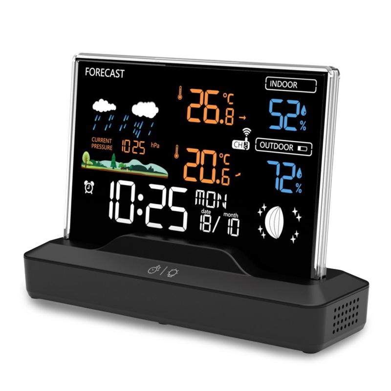 • Station météo sans fil avec écran LCD couleur, thermomètre d'intérieur/d'extérieur, hygromètre et réveil
