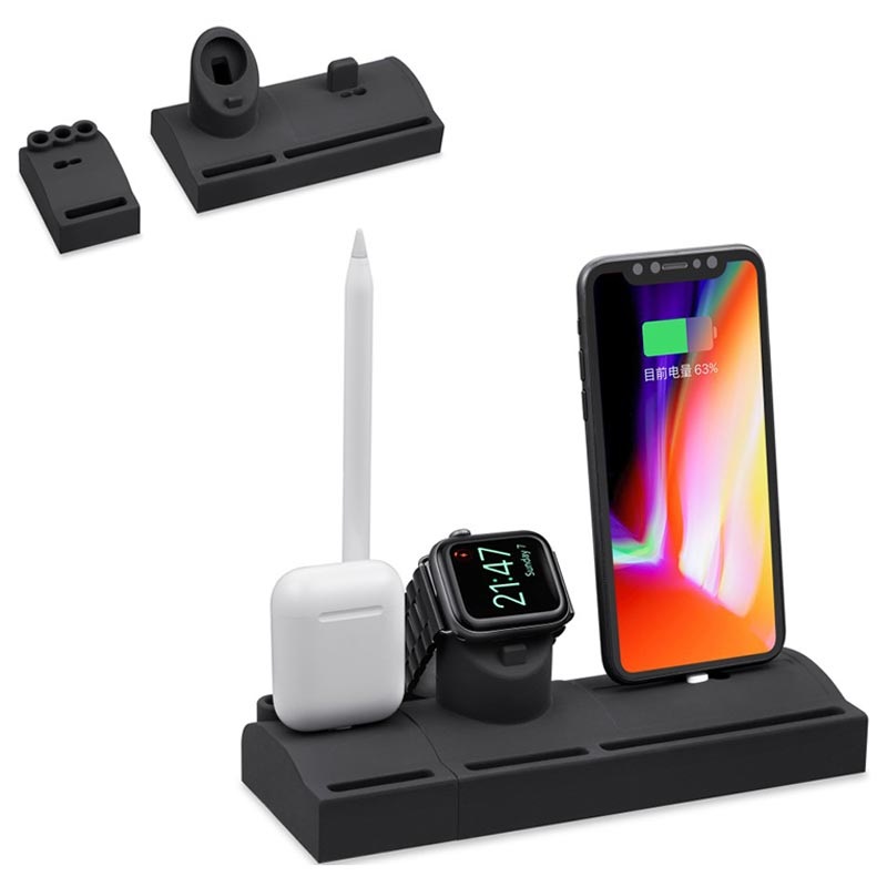 Support de Charge en Silicone 5-en-1 - iPhone, AirPods, Apple Watch, Apple Pencil, Porte-Carte