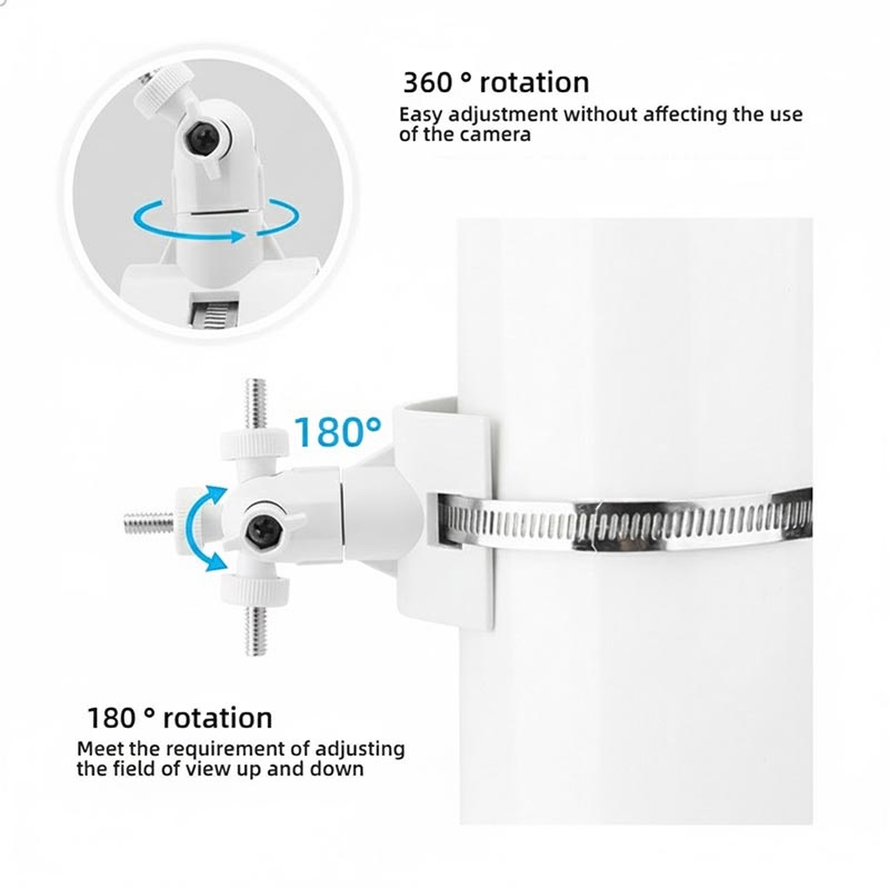Équipé d'une pince en acier inoxydable, le support offre une force de préhension importante et une stabilité à long terme. Il maintient solidement la caméra en place sur des poteaux ou des structures rondes, même dans des conditions extérieures.