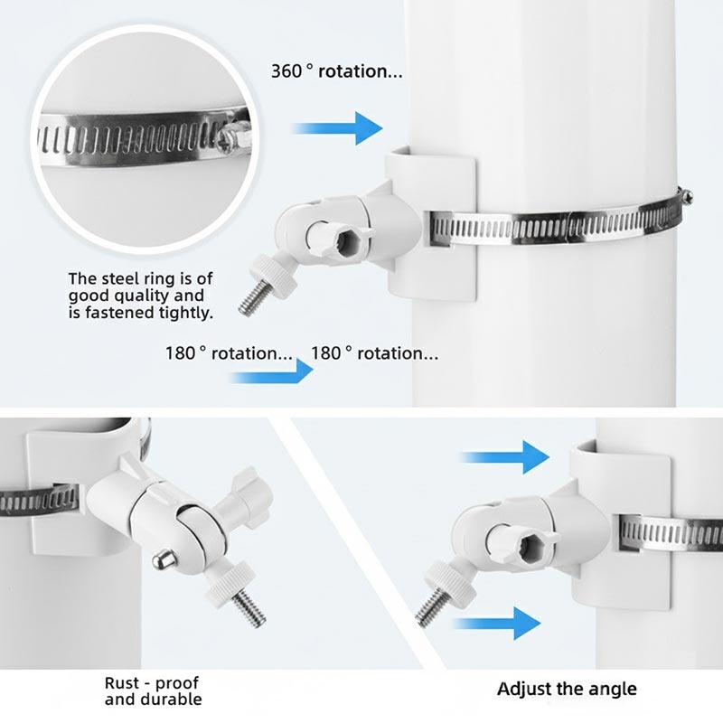 La conception de la pince permet le montage sur des tuyaux d'évacuation, des rampes, des poteaux, des troncs d'arbre et d'autres objets cylindriques, offrant des options d'installation flexibles pour les maisons, les jardins, les entrepôts et les zones extérieures.