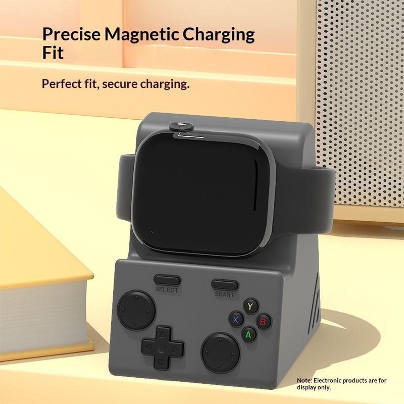 Support de recharge en silicone style console de jeux pour Apple Watch - Station de recharge antidérapante avec rangement pour câble