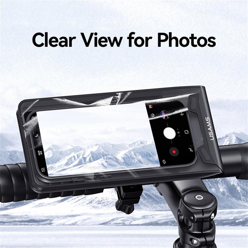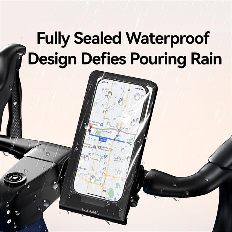 Support pour téléphone étanche Usams ZJ083 avec fenêtre transparente - Fixation pour guidon pivotante à 360 degrés (12-18 cm)