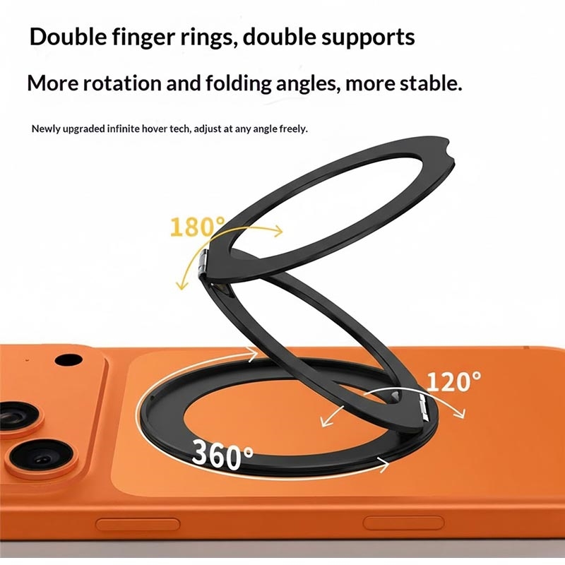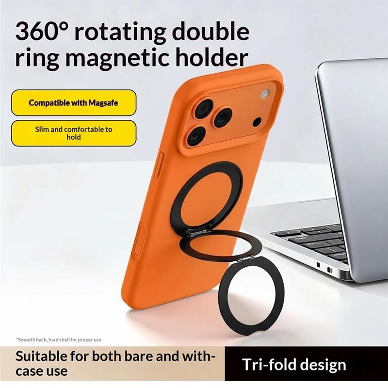 • Q11 Anneau magnétique triplé ultra-mince - Support de téléphone adhésif pivotant à 360°, compatible MagSafe