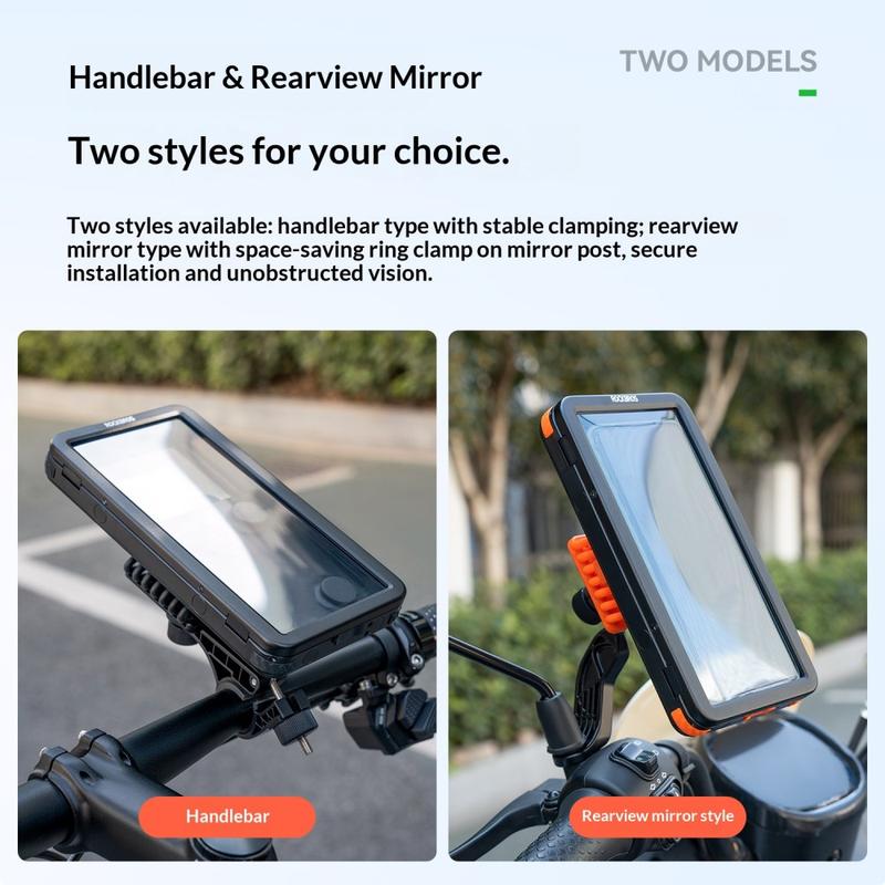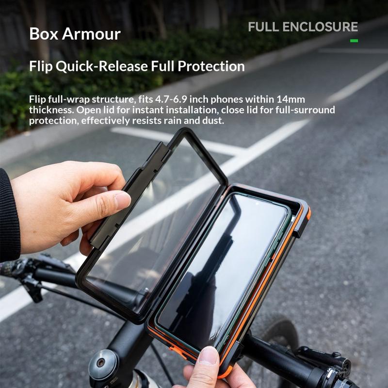 Ce support ROCKBROS est un choix judicieux si vous recherchez une protection contre les intempéries et un raccordement magnétique rapide. Il maintient votre téléphone en toute sécurité, améliore la visibilité grâce à une rotation complète et vous permet d'utiliser le chargement et l'appareil photo sans retirer l'appareil. Idéal pour les cyclistes qui recherchent la commodité sans sacrifier la protection.