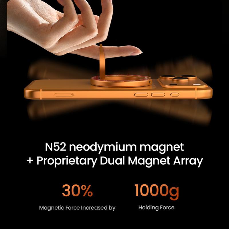 FiberSnap allie un design élégant à une flexibilité pratique. Son anneau à deux axes offre une prise en main sûre et naturelle, tandis que le contrôle progressif de l'angle garantit une position de vision parfaite à chaque fois. Grâce à son magnétisme double face et à ses matériaux de qualité supérieure, il offre commodité et style dans un accessoire compact.