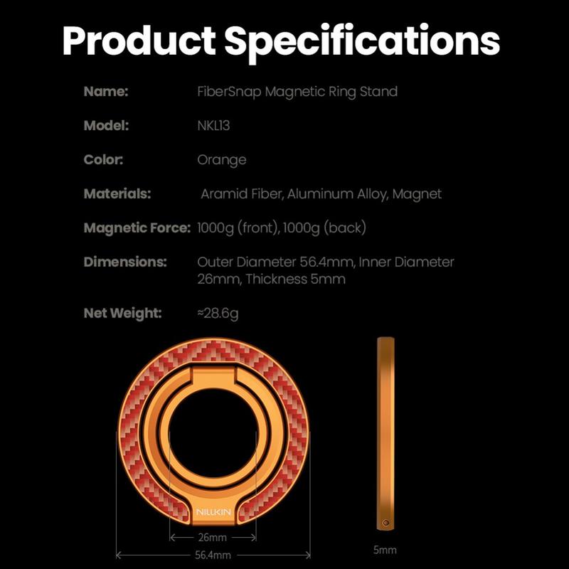 Le support magnétique FiberSnap de Nillkin associe des matériaux de qualité supérieure à des fonctionnalités flexibles pour améliorer l'utilisation quotidienne du téléphone. Fabriqué en fibre aramide légère et en aluminium anodisé, il offre une esthétique technique raffinée tout en garantissant une prise en main sûre et un affichage mains libres sans effort. Conçu pour une utilisation MagSafe transparente, il s'adapte en douceur au travail, aux voyages et à la vie quotidienne sans gêner.