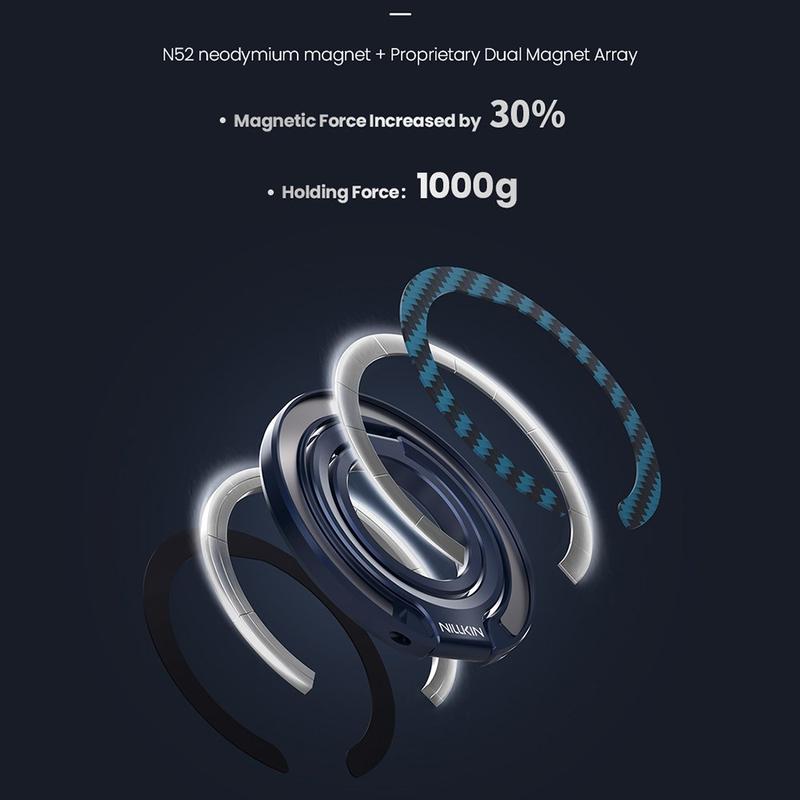 • Support magnétique pour bague Nillkin FiberSnap - Poignée en fibre aramide et aluminium avec réglage progressif de l'angle d'inclinaison