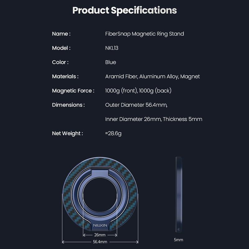 Support magnétique pour bague Nillkin FiberSnap - Poignée en fibre aramide et aluminium avec réglage progressif de l'angle d'inclinaison