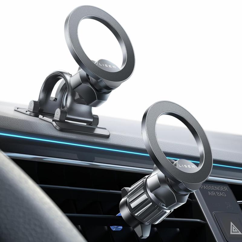 Le support magnétique universel pour voiture Lisen est conçu pour les conducteurs qui recherchent un support pour téléphone solide et stable, offrant des performances fiables quelle que soit la température. Utilisez-le sur la grille d'aération en été pour profiter de l'air frais de la climatisation, ou fixez-le sur le tableau de bord en hiver pour éviter l'air chaud. Grâce à un adhésif 3M de nouvelle génération et à une option de crochet pour grille d'aération, il offre un maintien sûr, un positionnement flexible et une intégration parfaite dans l'habitacle de votre voiture.