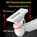 Le support permet une rotation horizontale de 360° et un réglage vertical de 180°, ce qui permet un positionnement complet de la caméra. Cette large plage de réglage permet d'éliminer les angles morts et d'assurer une couverture optimale de la zone surveillée.