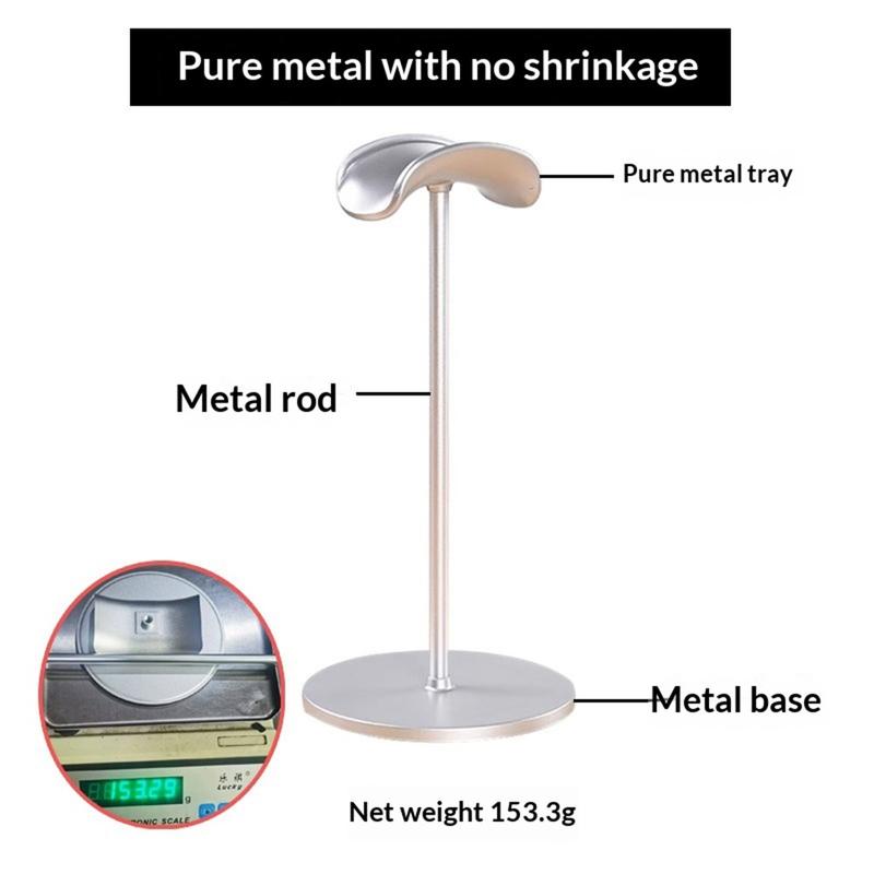 Fabriqué en alliage d'aluminium haut de gamme avec des éléments de support en ABS, ce support pour casque est conçu pour offrir une structure solide mais légère. Le matériau résiste à la corrosion et à l'usure quotidienne, ce qui en fait un accessoire durable pour une utilisation régulière sur un bureau, une étagère ou un poste de travail. Sa construction robuste confère également au support un aspect et un toucher haut de gamme par rapport aux alternatives en plastique plus légères.