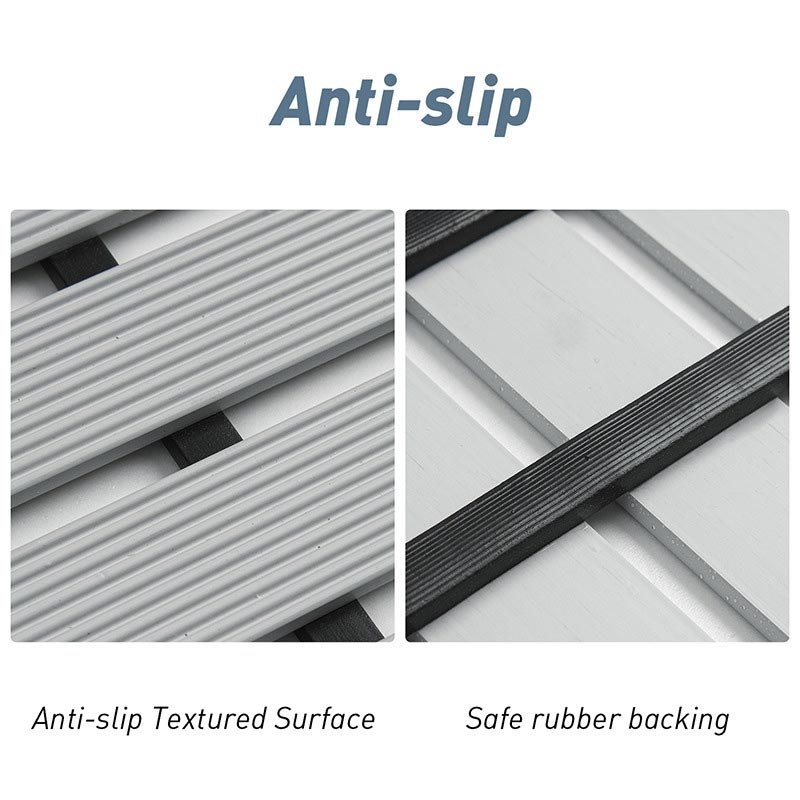 Le tapis est doté d'une surface texturée antidérapante combinée à un support en caoutchouc solide qui le maintient fermement en place, même sur les carreaux mouillés. Il empêche ainsi les glissements, offrant une utilisation plus sûre pour les enfants, les adultes et les personnes âgées.