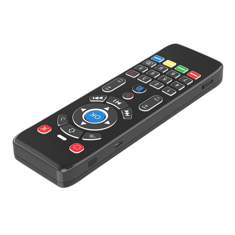 - Fonctions de contrôle : souris aérienne à gyroscope, pavé tactile, clavier QWERTY, apprentissage IR
