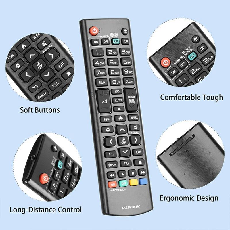 Cette télécommande AKB75095363 est le remplacement idéal de la télécommande de votre téléviseur LG : elle est facile à installer, durable et fiable. Si votre télécommande d'origine est perdue, cassée ou simplement usée, cette télécommande de remplacement rétablit toutes les fonctionnalités sans problème.