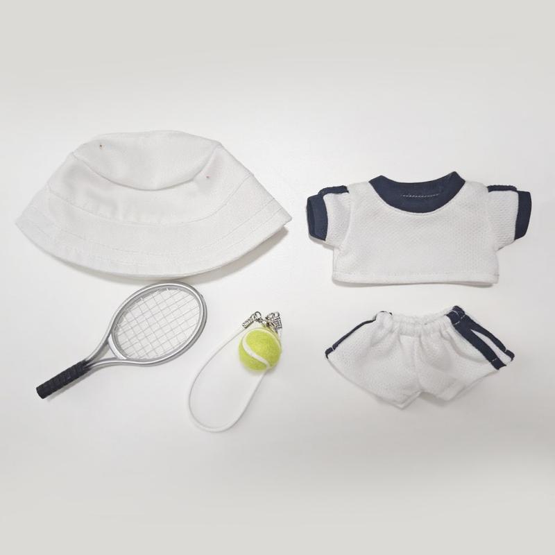 Ensemble de tennis pour poupée Labubu 17cm - 5 Pcs. - T-Shirt, short, chapeau, raquette de tennis, breloque balle de tennis