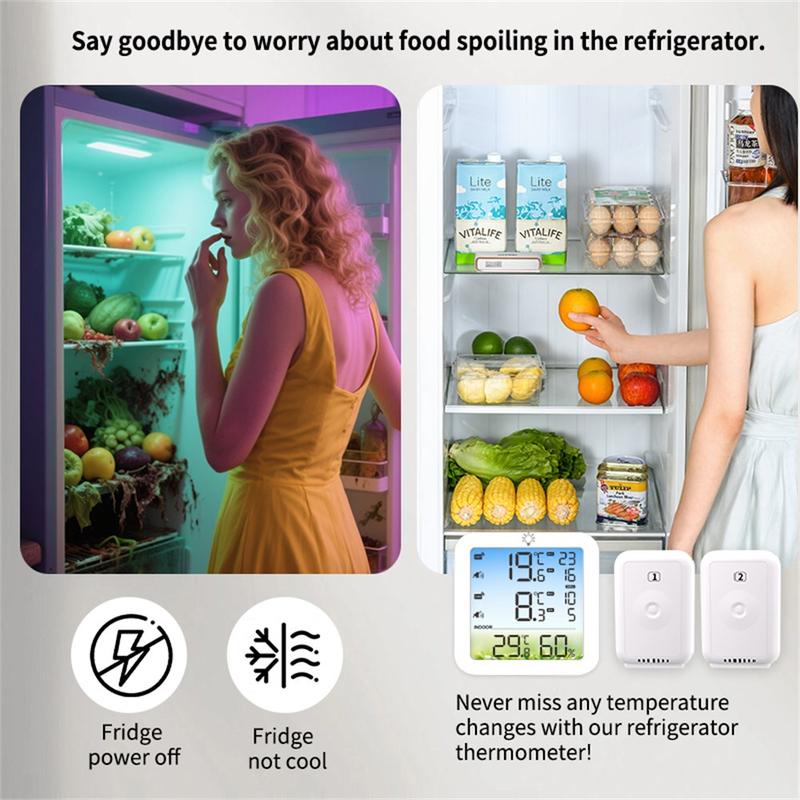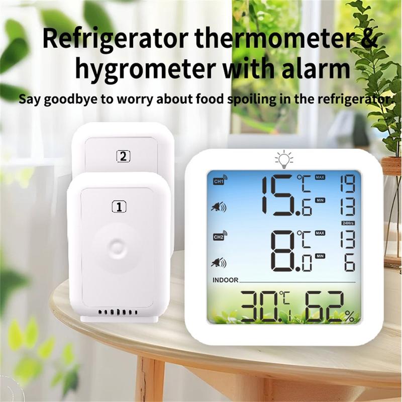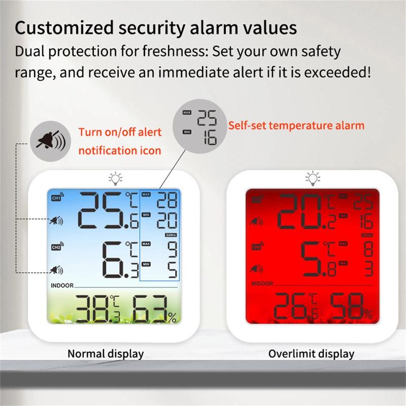 • Thermomètre-hygromètre sans fil à double canal TS-8082 - Système de surveillance de la température pour réfrigérateurs et congélateurs avec 2 capteurs et alarme