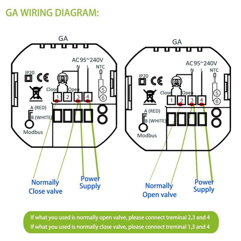 Fabriqué à partir d'un matériau PC+ABS ignifuge et durable, ce thermostat est conçu pour offrir des performances à long terme et un fonctionnement stable. La protection contre les coupures de courant permet de conserver vos réglages enregistrés, réduisant ainsi la nécessité de reconfigurer l'appareil après une interruption. Son format d'installation encastré s'adapte à un boîtier mural standard de 86 x 86 mm ou à un boîtier européen classique, ce qui le rend adapté à un large éventail d'intérieurs.