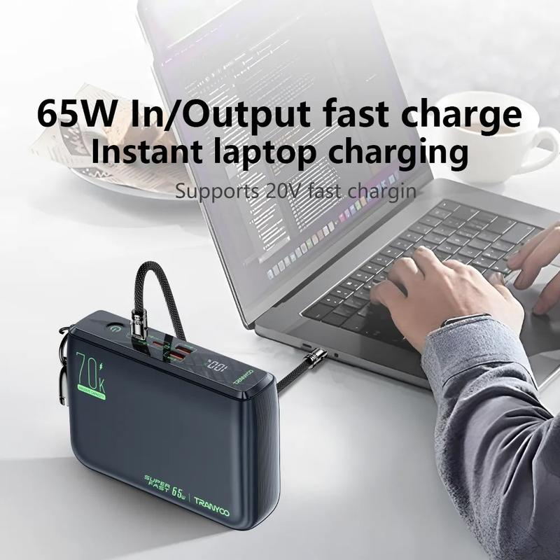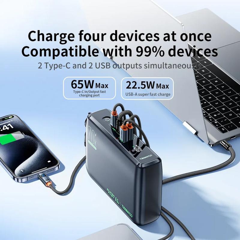 Tranyoo T-L7 70000mAh Power Bank - Chargement rapide PD 65W, chargeur haute capacité à 4 ports avec écran intelligent