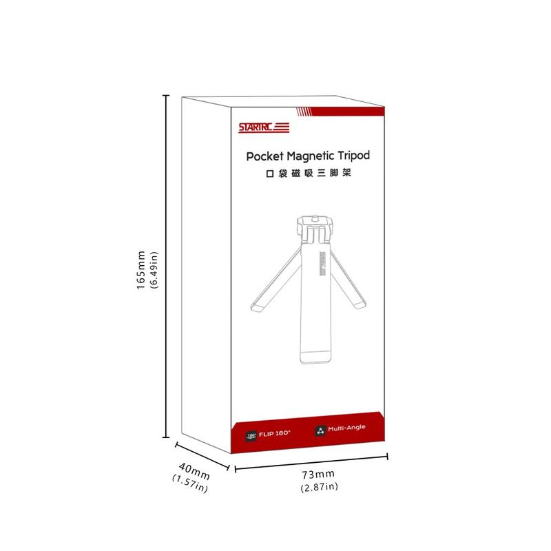 Le trépied magnétique STARTRC présente un design fin et pliable qui se glisse facilement dans votre poche ou votre sac. Une fois plié, il ne mesure que 170 x 35,8 x 12,5 mm, ce qui le rend idéal pour les voyages, les prises de vue en extérieur et le transport quotidien.