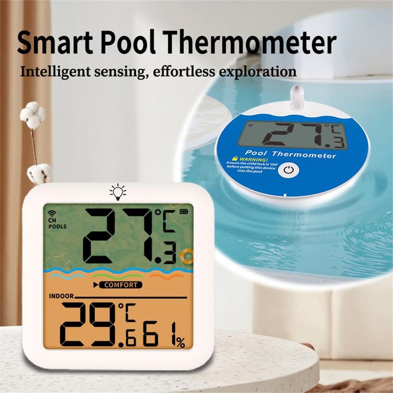 - Thermomètre de piscine sans fil avec récepteur d'intérieur