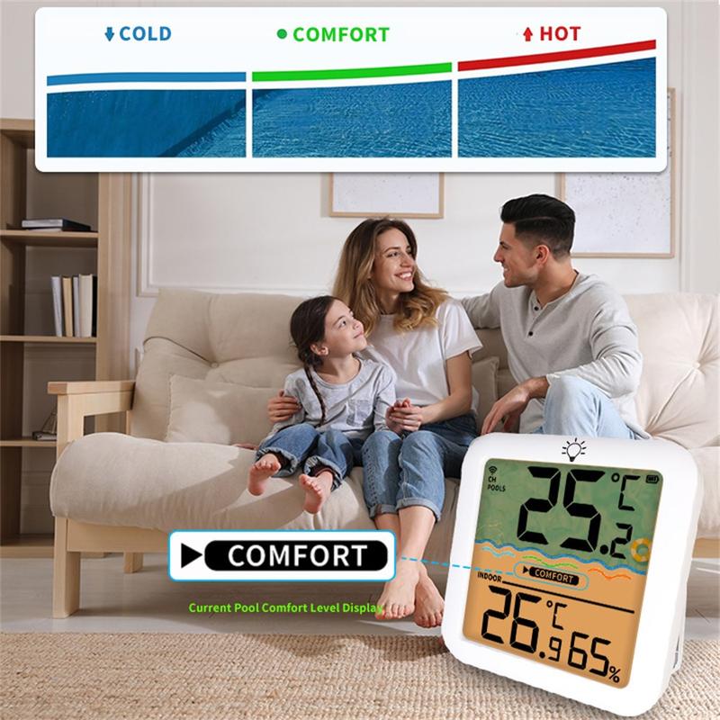 C'est également un choix pratique pour les familles et les nageurs assidus qui souhaitent surveiller la température avec plus de précision, sans avoir à deviner. L'affichage supplémentaire de la température et de l'humidité intérieures, la fonction mémoire et la flexibilité de placement du récepteur le rendent plus utile qu'un simple thermomètre à eau.